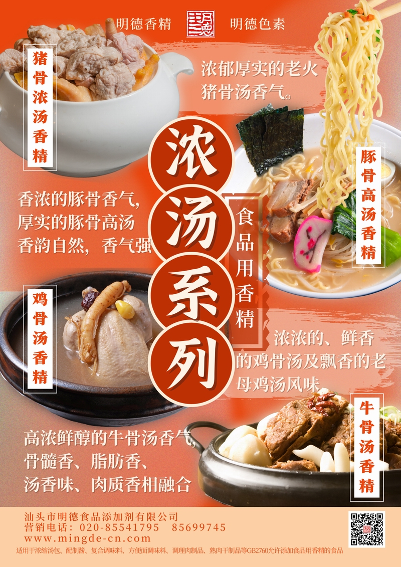 明德濃湯風(fēng)味系列香精 骨湯真韻 湯感醇厚汕頭市明德食品添加劑有限公司推出的濃湯系列香精,涵蓋豬骨濃湯、豚骨高湯、雞骨湯、牛骨湯等多種調(diào)性。產(chǎn)品真實(shí)還原老火熬煮的骨香與湯感層次,香氣厚實(shí),留香穩(wěn)定。適用于調(diào)味料、復(fù)合調(diào)味料、濃縮湯包、方便面湯包、調(diào)理食品及肉制品等B端應(yīng)用,幫助工廠快速打造統(tǒng)一、標(biāo)準(zhǔn)化的骨湯風(fēng)味。